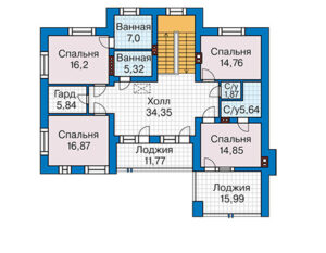 Этот проект идеально подходит для большого участка и предлагает девять спален, обеспечивая комфорт и пространство для всей семьи. Дом выполнен в стиле шале, что добавляет ему особую привлекательность и шарм.