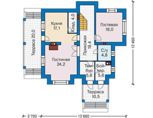 Общая площадь дома составляет 186 м2, а с учетом террасы — 30,5 кв.м. Это идеальный размер для комфортного проживания, где каждому члену семьи будет достаточно места.