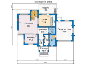 Представляем вам проект дома №68-52 — двухэтажного дома с общей площадью 265 м2. Этот просторный дом имеет размеры 20 на 12 метров и включает в себя все необходимые помещения для комфортного проживания.