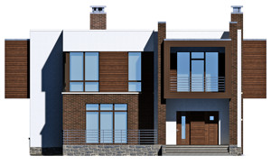 Проект дома №68-54 идеально подходит для тех, кто ценит современный стиль и функциональность. Внешний вид дома выполнен в черных тонах, что придает ему особую привлекательность. Крыша дома плоская, что создает элегантный и современный облик.