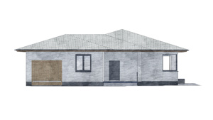 Одноэтажный дизайн дома обеспечивает удобство и практичность, а также легкий доступ ко всему пространству. Кухня станет центром семейных встреч и приготовления вкусных блюд.