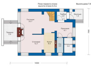 Представляем вам уникальный проект дома №70-40 с мансардой, который обладает всеми необходимыми особенностями для комфортного проживания. Данный проект представляет собой дом размером 10 на 7 метров, с общей площадью 123 м2. Он идеально подходит для узких участков, благодаря своей компактности и удобной планировке.