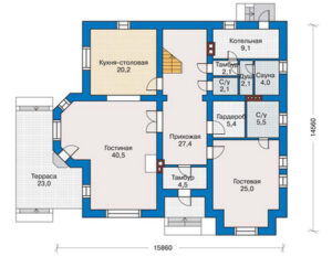 Представляем вам проект дома №70-66 — уникальное двухэтажное здание размером 15 на 14 метров. Общая площадь этого дома составляет 266 м2, что обеспечивает комфортное пространство для вашей семьи. Особенностью этого проекта является наличие второго света, который позволяет естественному освещению проникать внутрь дома, создавая атмосферу света и простора.