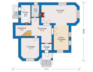 Представляем вам проект дома №71-12 — двухэтажного дома размером 14 на 12 метров, общей площадью 207 квадратных метров. Этот уютный дом включает в себя котельную и просторную кухню-столовую.