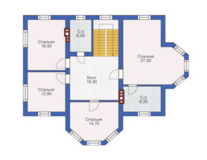 Четыре спальни на втором этаже позволят каждому члену семьи иметь свое приватное пространство, а двухэтажная планировка создает ощущение простора и свободы.