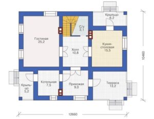 Главной особенностью этого проекта является наличие террасы, где вы сможете наслаждаться свежим воздухом и проводить время с близкими. Кроме того, в доме есть котельная, что обеспечит тепло и комфорт в холодное время года.