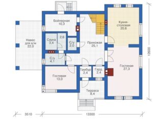 Особенностью этого проекта является наличие сауны, которая позволяет создать атмосферу полного релакса и уюта. Кроме того, дом предлагает четыре просторные спальни, что делает его идеальным для большой семьи или гостеприимного приема гостей.