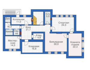 Этот проект идеально подходит для тех, кто ищет просторный дом с большой площадью от 250 квадратных метров. Он сочетает в себе функциональность и стиль, обеспечивая комфортное проживание для всей семьи.