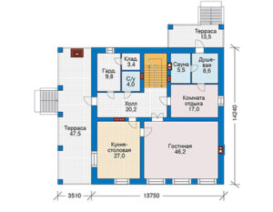 Проект дома №73-27 — это просторный двухэтажный дом с цоколем, идеально подходящий для большой семьи. Общая площадь составляет 435 квадратных метров, включая котельную и кухню-столовую. Дом также имеет прекрасную террасу площадью 63,9 квадратных метров, где вы сможете наслаждаться свежим воздухом и отличными видами. Внутри дома есть три спальни, предоставляющие комфортное пространство для отдыха и сна. Этот проект идеально подходит для тех, кто ищет просторное жилье от 250 квадратных метров. Два этажа дома обеспечивают удобство и функциональность, а котельная гарантирует тепло и комфорт. Этот проект — идеальное решение для семьи, которая хочет создать свой уютный и просторный дом.