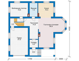Проект дома №74-37 представляет собой двухэтажный дом размером 14 на 14 метров, общей площадью 250 м2. В этом проекте предусмотрены гараж и котельная, что делает его идеальным для семей, у которых есть автомобиль и потребность в отоплении. Кроме того, дом обладает крыльцом площадью 3,3 кв.м и балконом площадью 12,00 кв.м, что добавляет ему эстетическую привлекательность и функциональность.