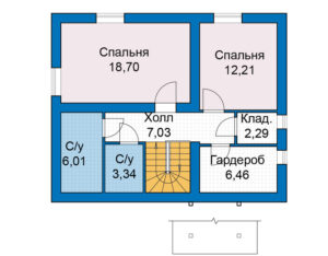 Особенностью этого проекта является наличие двух крылец, которые добавляют еще 4,58 кв.м площади. Такое решение позволяет создать уютные и функциональные зоны для отдыха и приема гостей.