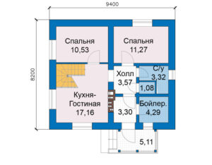 Проект дома №81-45 с мансардой представляет собой компактное и экономичное решение для узких участков. Общая площадь дома составляет 106 квадратных метров, включая котельную и кухню-столовую. Крыльцо дополнительно добавляет 5,11 квадратных метров. Этот проект идеально подходит для семей с шестью спальнями, обеспечивая комфортное проживание на площади до 120 квадратных метров. Мансардный этаж добавляет дополнительное пространство до 150 квадратных метров. Дом выполнен из недорогого и прочного материала — газобетона. Этот небольшой мансардный дом сочетает в себе функциональность, стиль и экономию пространства, идеально подходя для тех, кто ищет уютное жилье на ограниченном участке.