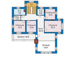 Представляем проект дома №81-69 — двухэтажный дом размером 17 на 17 метров, общей площадью 271 м2. Этот уникальный проект обладает особенностью — вторым светом, который придает дому дополнительную просторность и светотусклость. В дополнение к этому, в проекте предусмотрены терраса, котельная и кухня-столовая. Балкон площадью 68,8 кв.м. станет идеальным местом для отдыха и наслаждения панорамным видом. Этот дом выполнен в английском стиле, что придает ему особый шарм и элегантность. С шестью спальнями, этот проект идеально подойдет для большой семьи или для тех, кто предпочитает простор и комфорт. Проект дома №81-69 — это идеальный выбор для тех, кто ищет дом со вторым светом, террасой и простором, воплощающий в себе лучшие черты английского стиля.