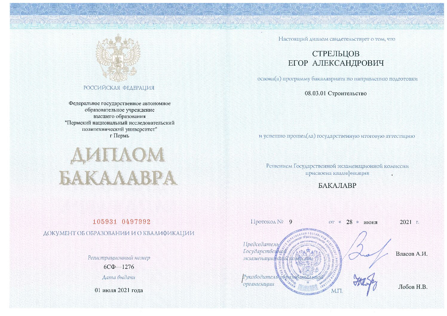 В 2021 году закончил обучение на бакалавра, и успешно защитил диплом на «отлично».