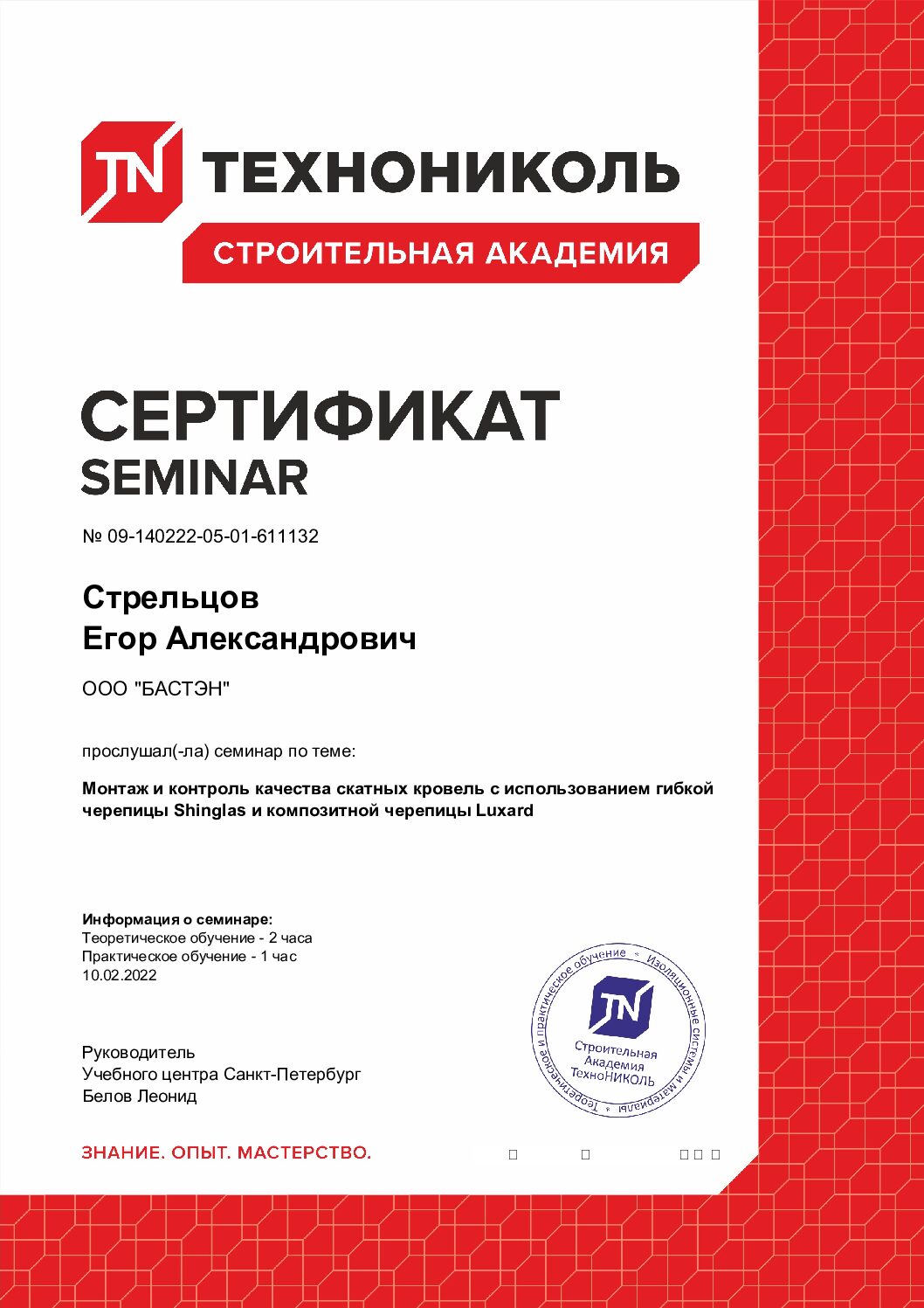 Сейчас Егор продолжает развиваться в направлении индивидуального жилищного строительства, обучается на семинарах, проходит повышения квалификации, применяя знания в своей работе в БАСТЭН.