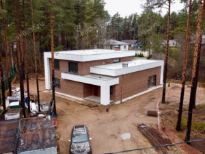 В этом году смонтировали все коммуникации в доме и выполнили фасадные работы: выложили кирпичную облицовку внешних стен, а также смонтировали фибросайдинг.